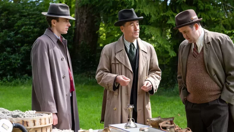Susan cracks her case—not without mishap—then accompanies Pünd as he lays out the solution to Alan’s final book, while magpies watch from above.